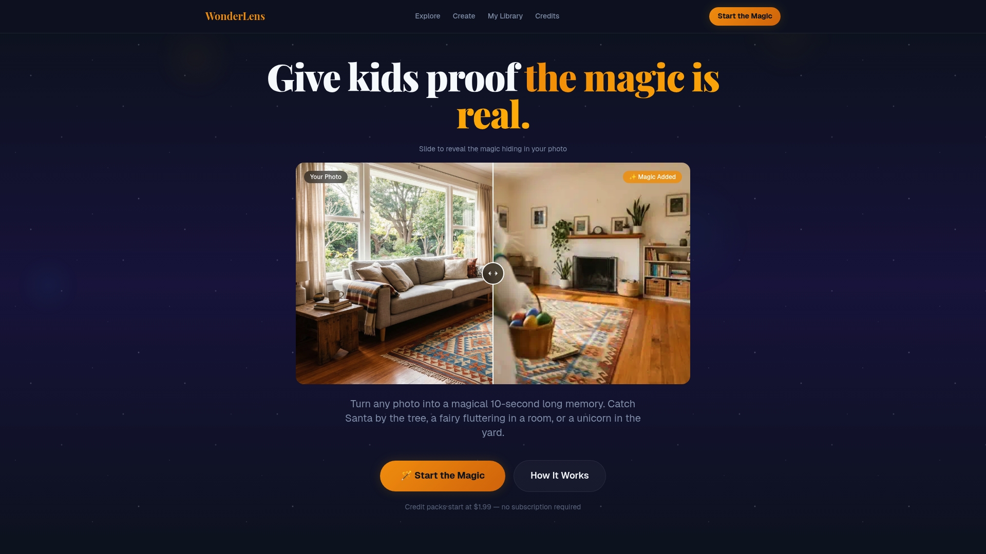 No technical skill required. Just upload your photo, choose your magic, and watch the wonder unfold. Starting at just $1.99 per video, it's an affordable way to create keepsakes your kids will ask to watch again and again. Give your family traditions a little extra sparkle this year with WonderLens.